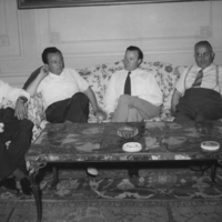 Joint meeting of UIL_CISL secretariats at Grand Hotel Rome, July 24, 1953."Left to Right: Paolo Cavezzali, CISL Secretariat; Italo Viglionesi, UIL Secretariat; Walter Reuther; Giulio Pastore, Sec. Gen. CISL."
