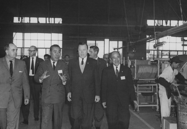 Getting a first-hand look at how cars are made in Japan.-Isuzu Auto Plant, Fujisawa. November 17, 1962