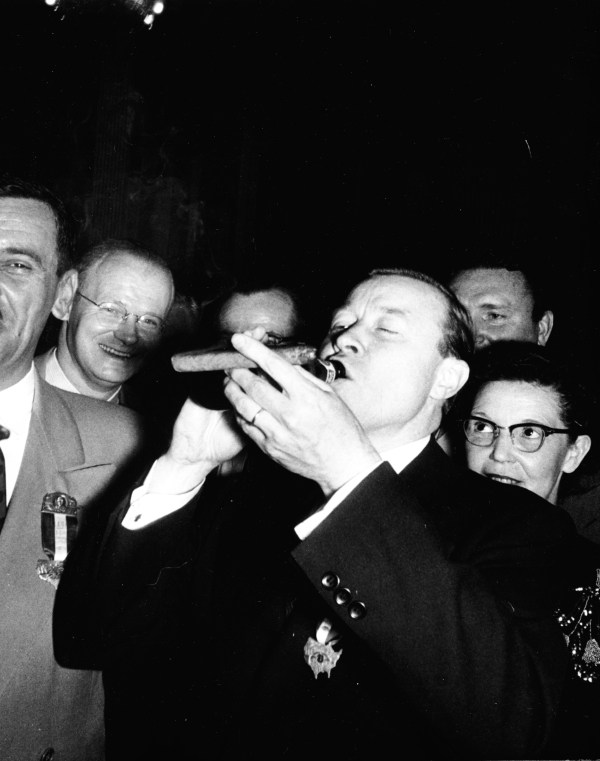 Walter Reuther taking a drink of beer at the 1952 CIO convention after he was elected president of the CIO. Although he did not smoke or drink, Reuther promised to smoke a cigar and drink a beer if he won."1952" Photograper: Allan Grant, LIFE Magazine
