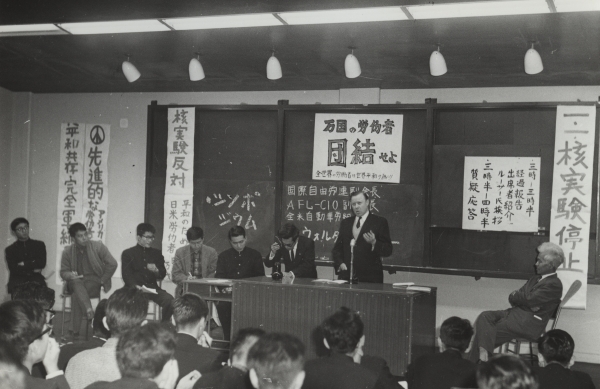 Walter Reuther speaking to an audience while visiting Japan. November, 1962